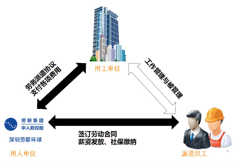 用工單位和勞務(wù)派遣機構(gòu)簽訂派遣協(xié)議,派遣機構(gòu)與派遣人員簽訂勞動合同,用工單位與派遣員工之間只是一種有償使用關(guān)系,沒有勞動合同關(guān)系,這樣用工單位就可避免直接與派遣人員發(fā)生勞動合同關(guān)系上的糾紛。